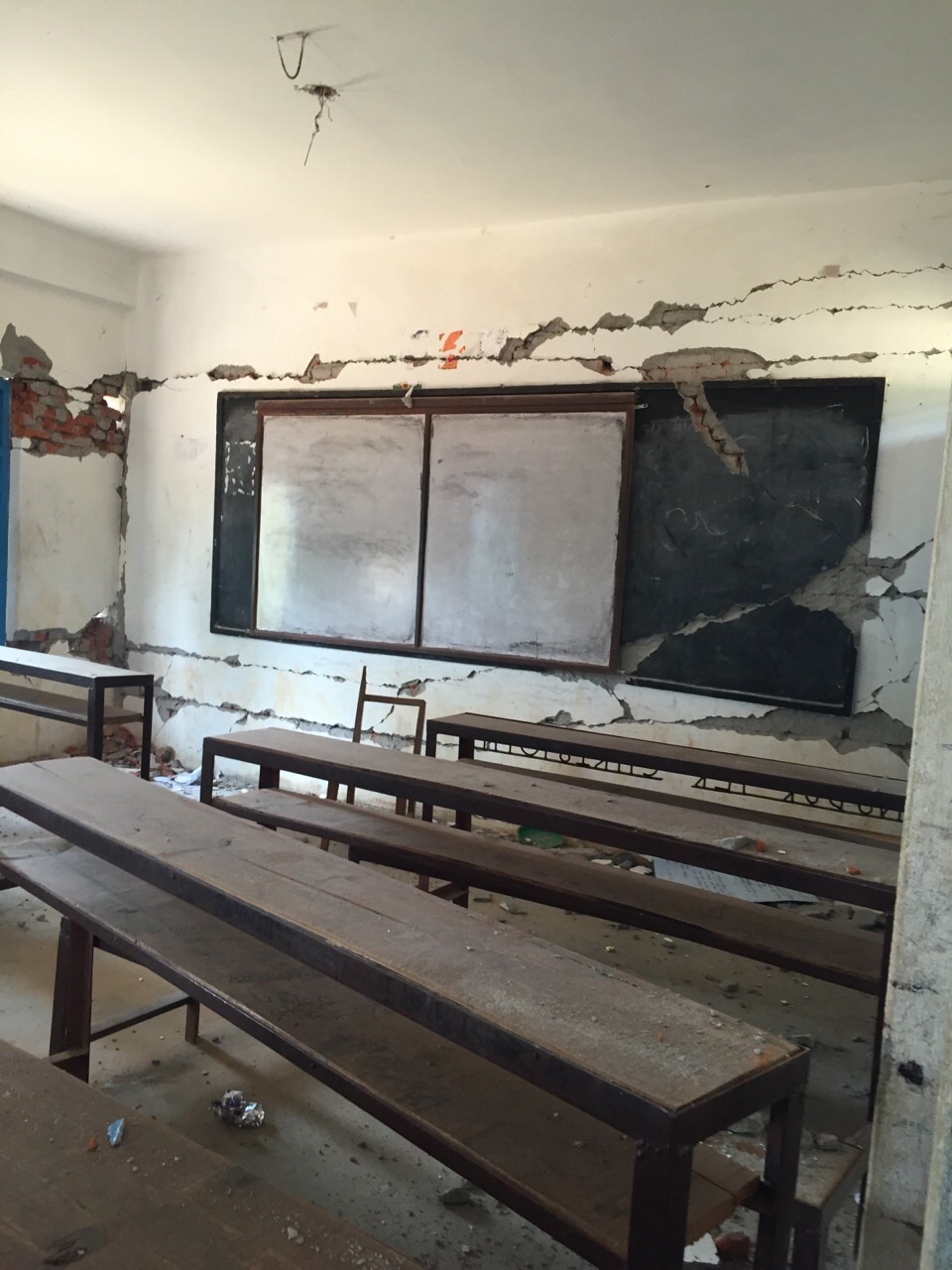 Theo musste uns leider auch berichten, dass eines seiner Schuleprojekte schwer beschädigt wurde. Glücklicherweise war zum Zeitpunkt des Erdbebens kein Unterricht und es wurde niemand verletzt.